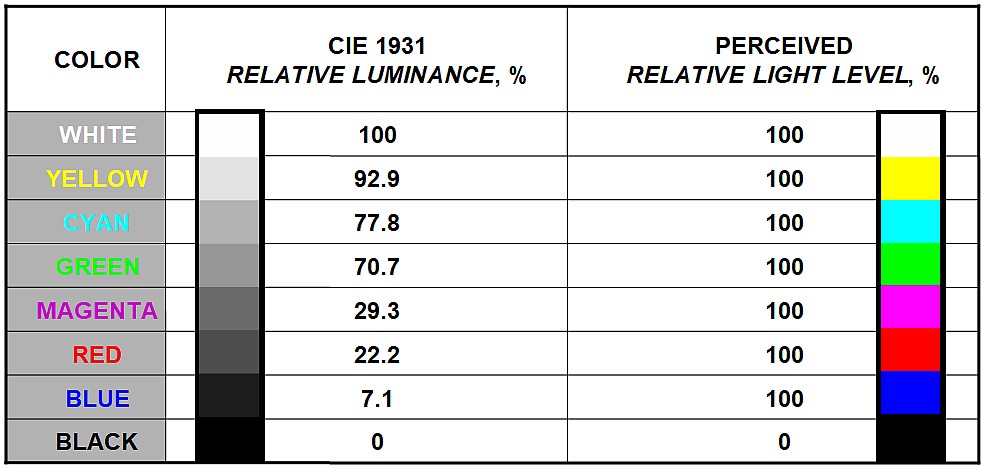 Video Content Nits vs. CIE Luminance in cd/sq.m