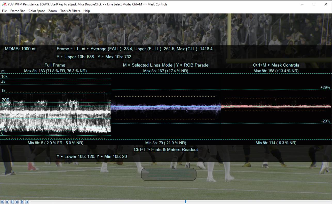 In the case of measurement of the HDR video content Light Levels the use of cd/sq.m should be avoided; instead we should use different units – video content LL nits’ and/or video content LL percents’ based on calculation of LL = EOTF(max(R,G,B)) values.