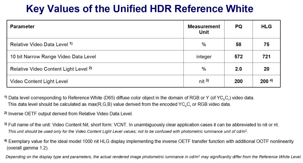 A group of the renown industry experts proposed new Unified HDR Reference White values equally suitable for PQ and HLG systems