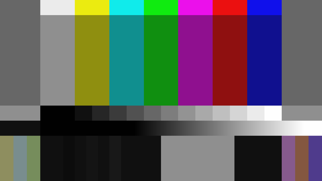 - Full frame color bars - the most common video test pattern