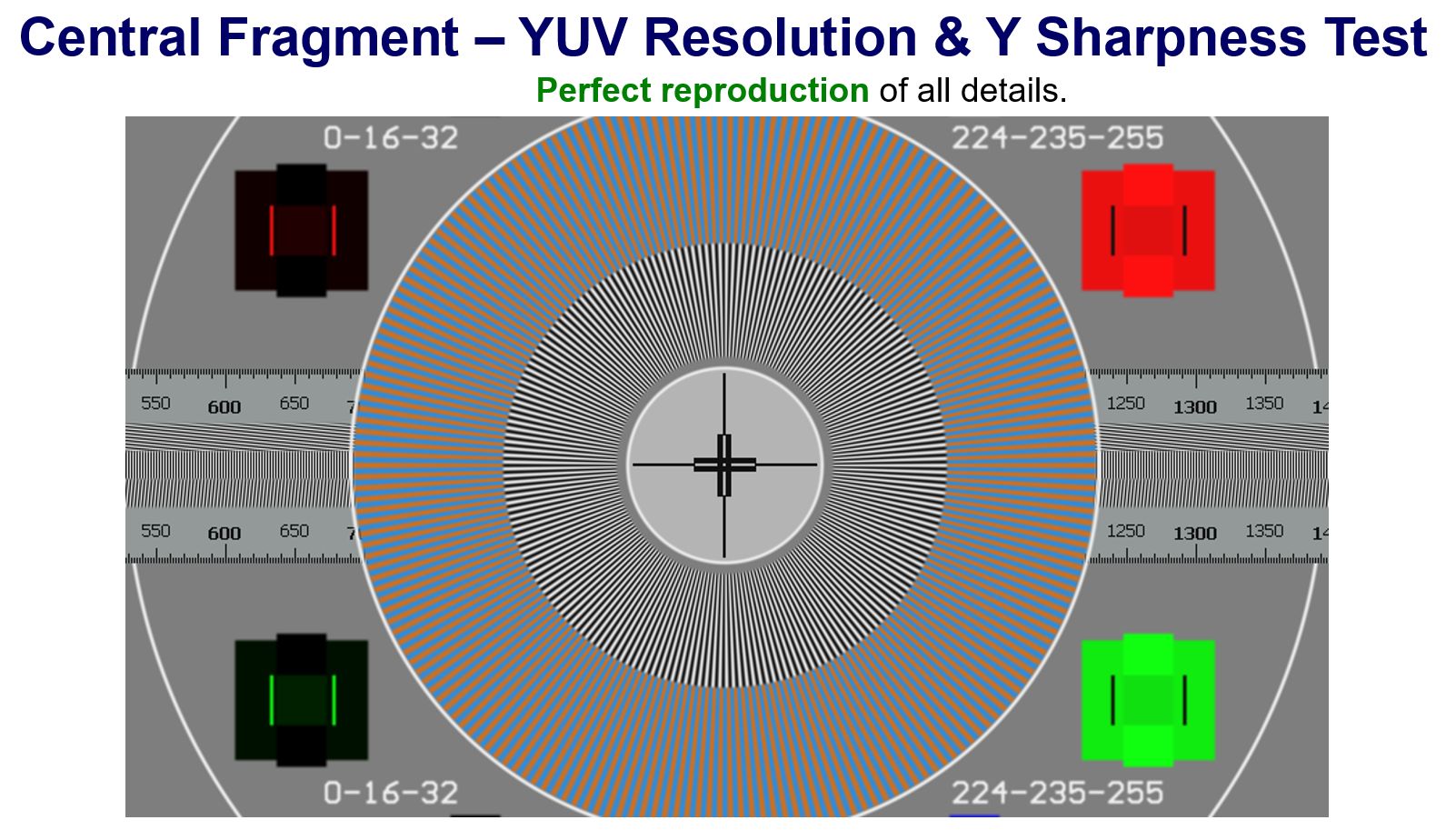 - BT.2020, BT.709, BT.601 compliant tests
