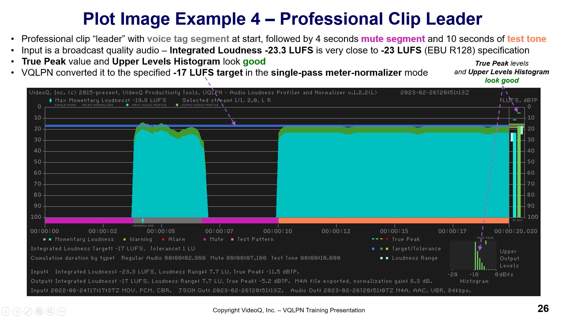 - It detects and sorts audio segments by types (regular audio, test tone, mute)