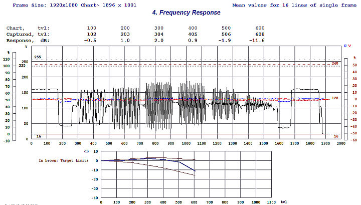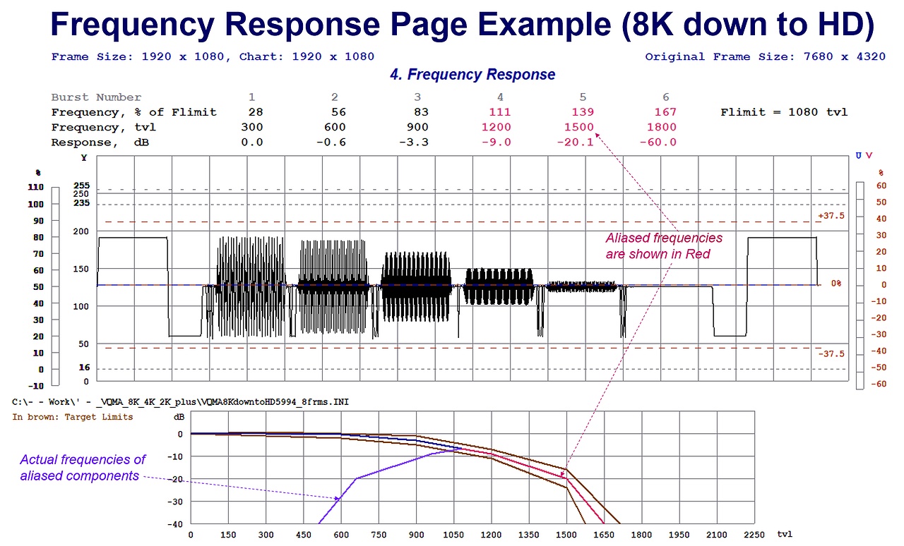 - Frequency Response: in dB vs. scalable tvl, including aliasing level