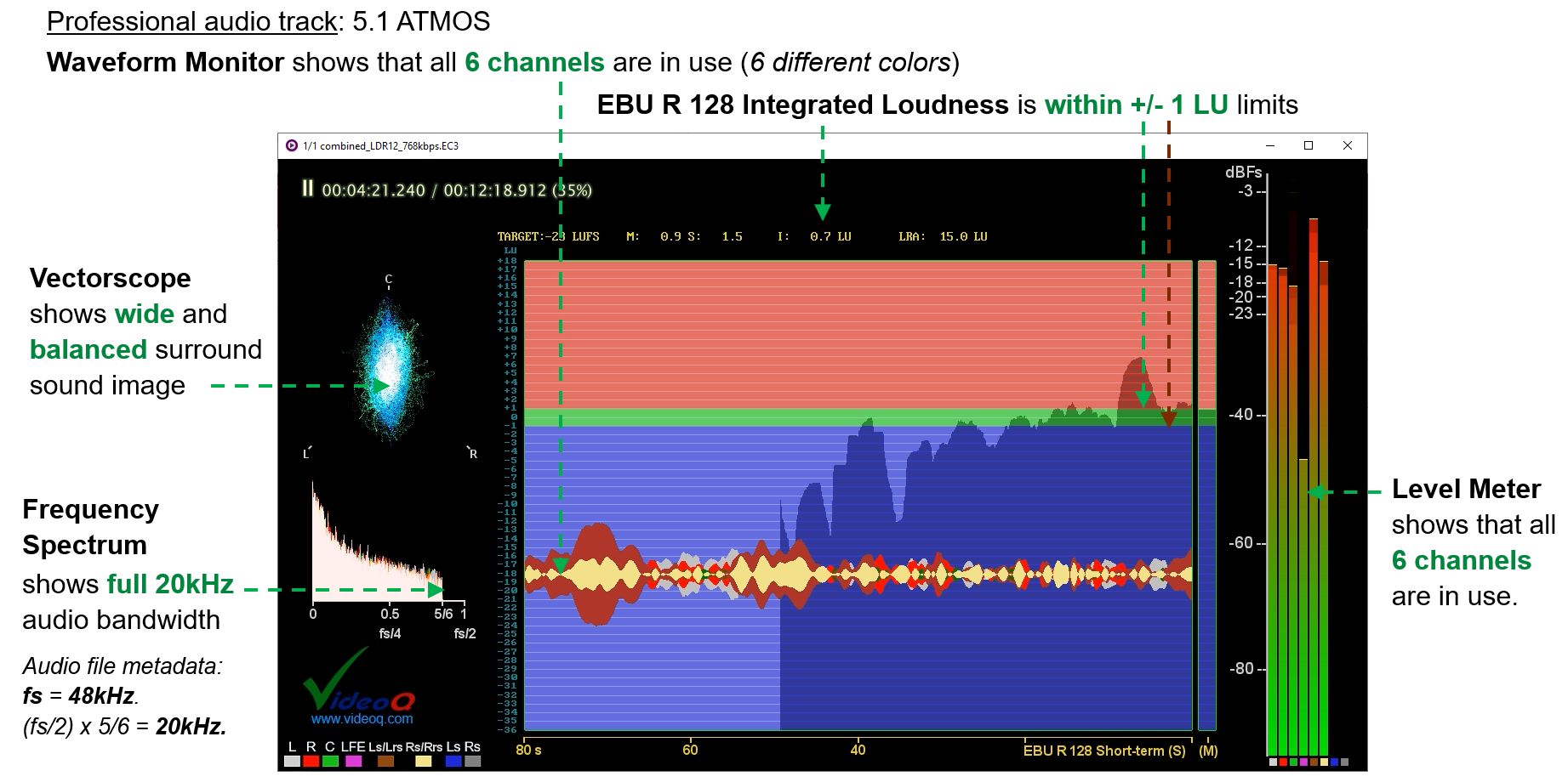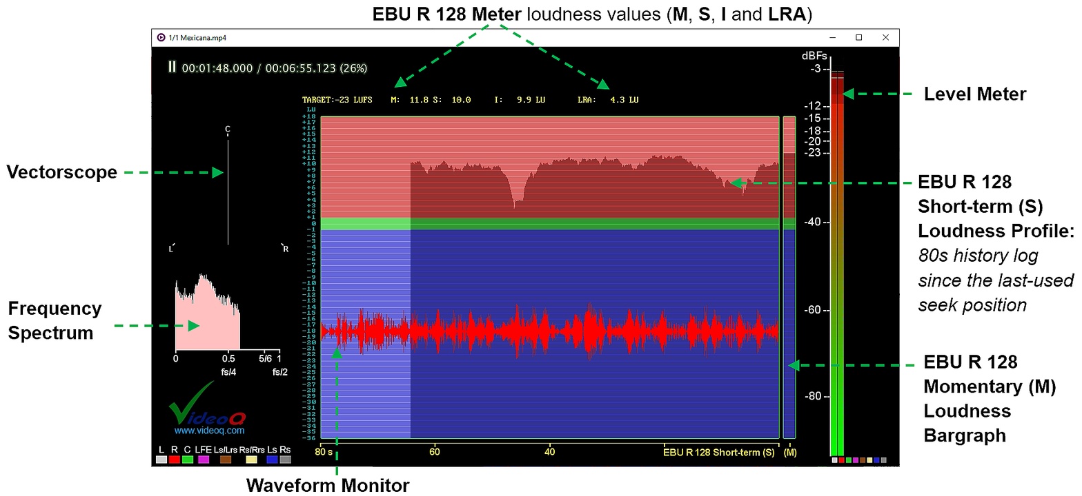 - Loudness values: M - momentary, S - short-term, I - integrated, LRA - range