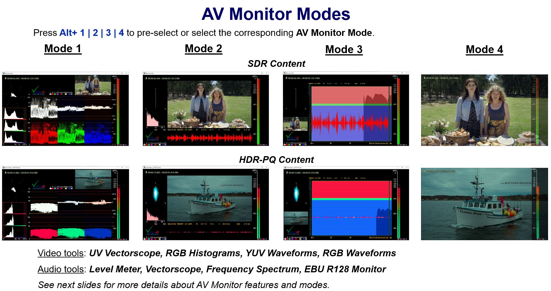 • Advanced AV Monitor combining Video Image and AV Analysis tools