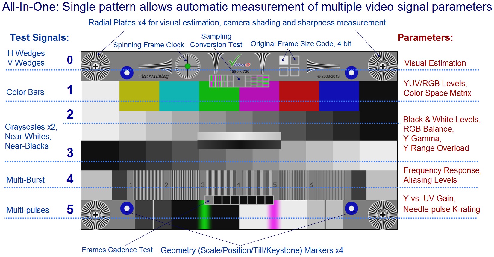 - Easy-to-use tool, instantly revealing your video camera, codec, scaler, converter or other video device performance