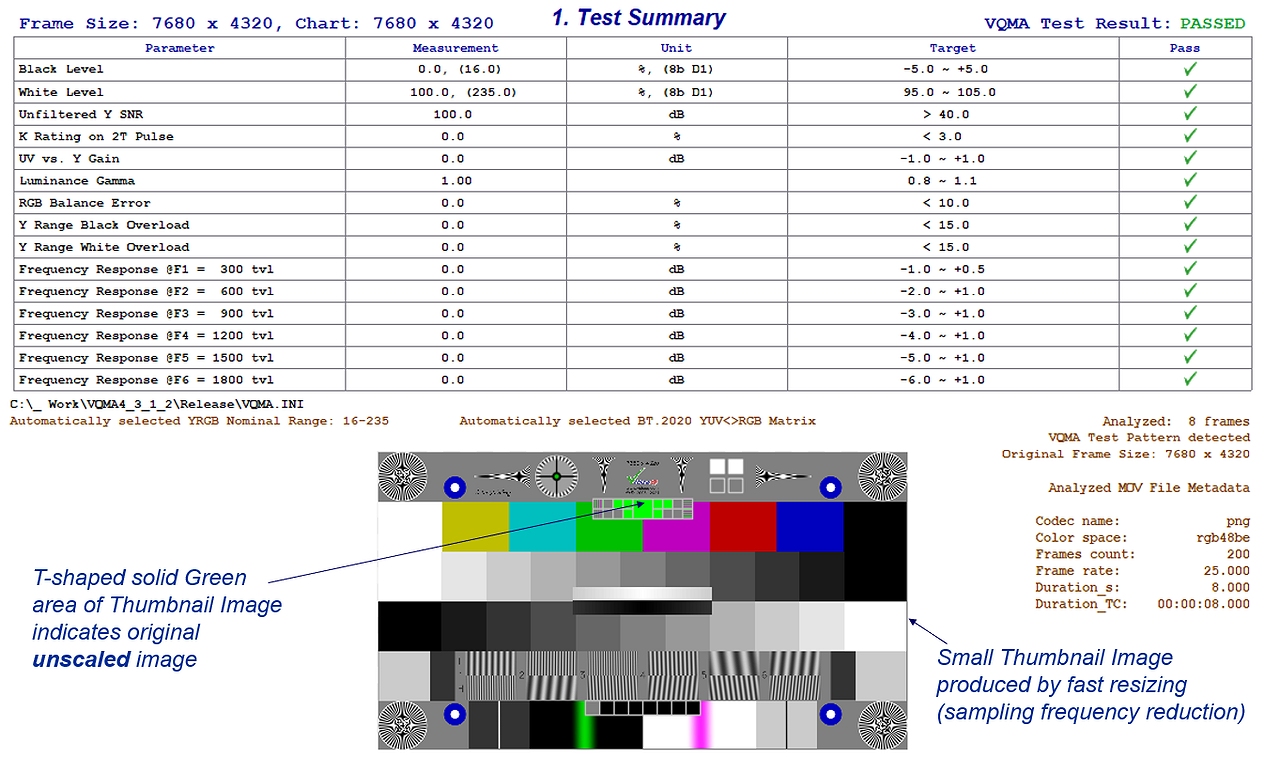 - Auto-analysis on the companion VQMA Matrix Test Pattern